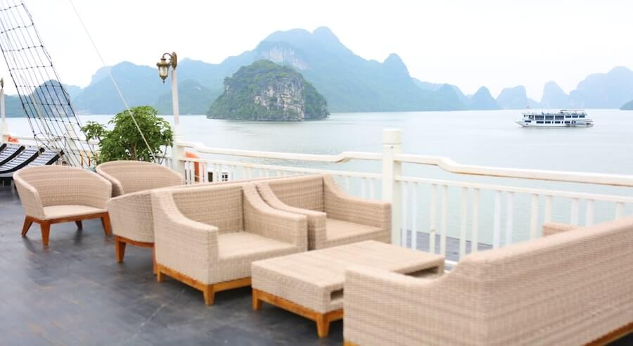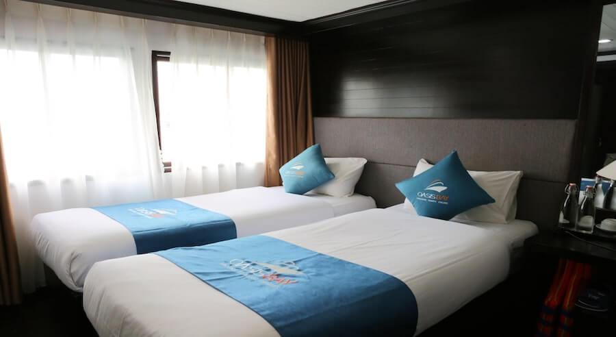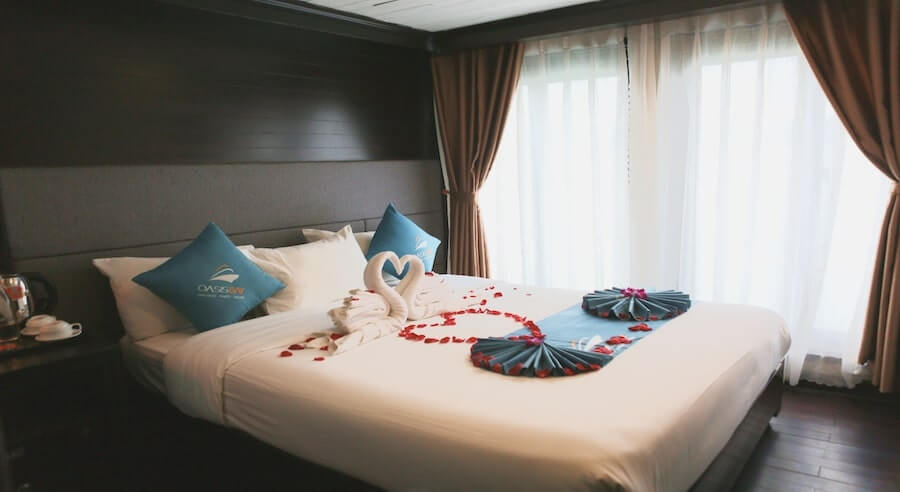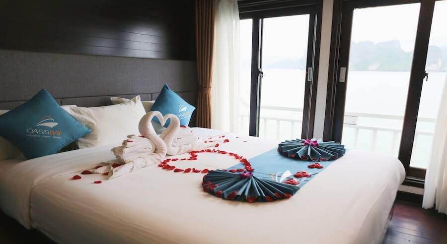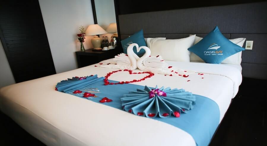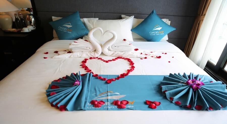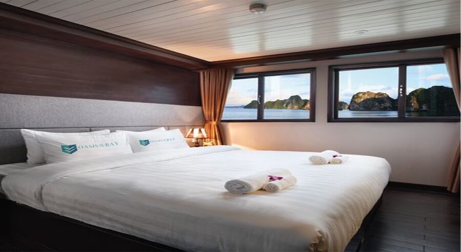 Get ready to be picked up by our shuttle bus around 8:00. Around 12:15, the shuttle bus will arrive in Tuan Chau Harbor. After a short break in Oasis Bay Lounge, you will be transferred to Oasis Bay Cruise to enjoy a welcome drink, check in cabin, and listen to safety instructions.