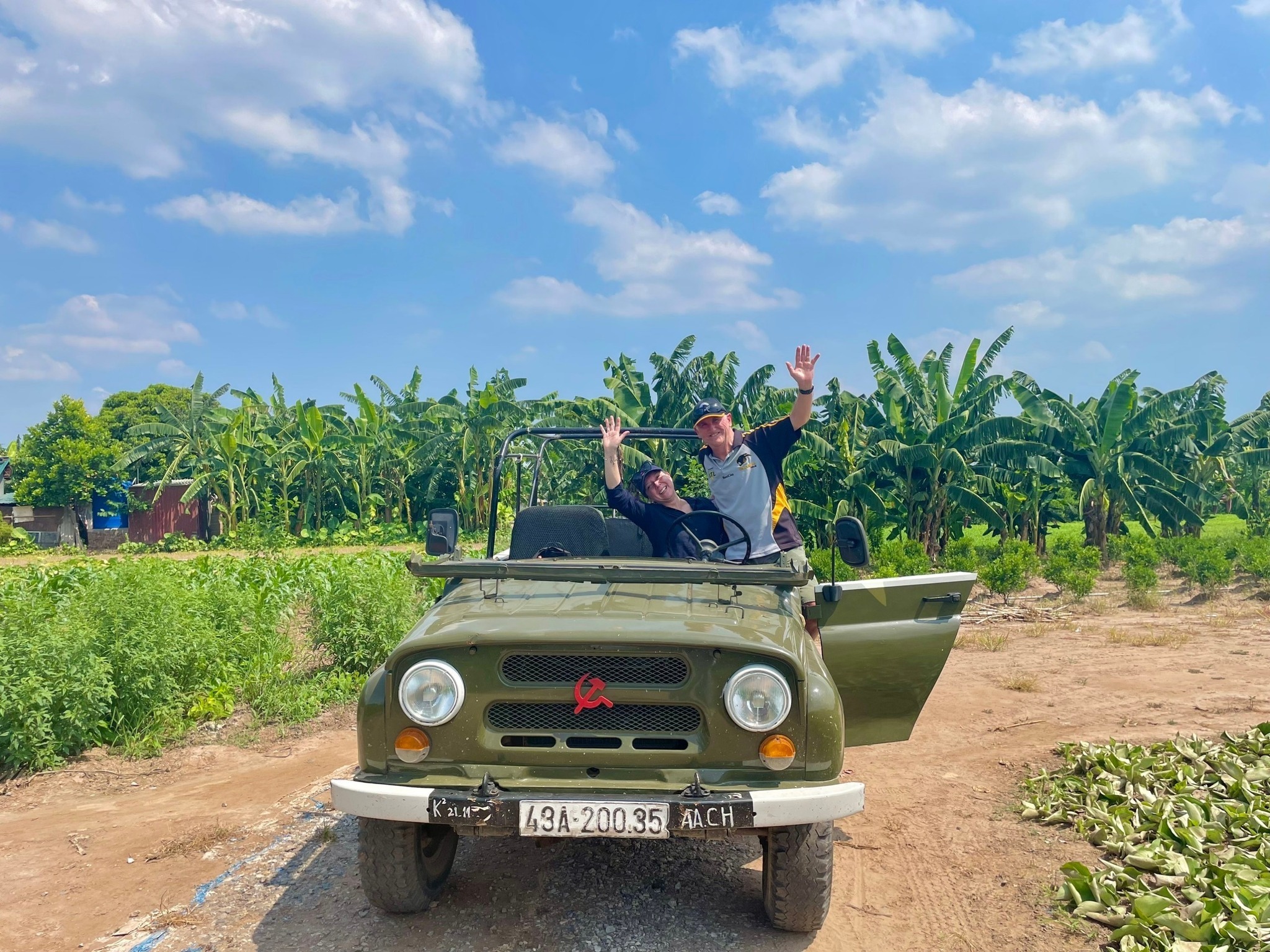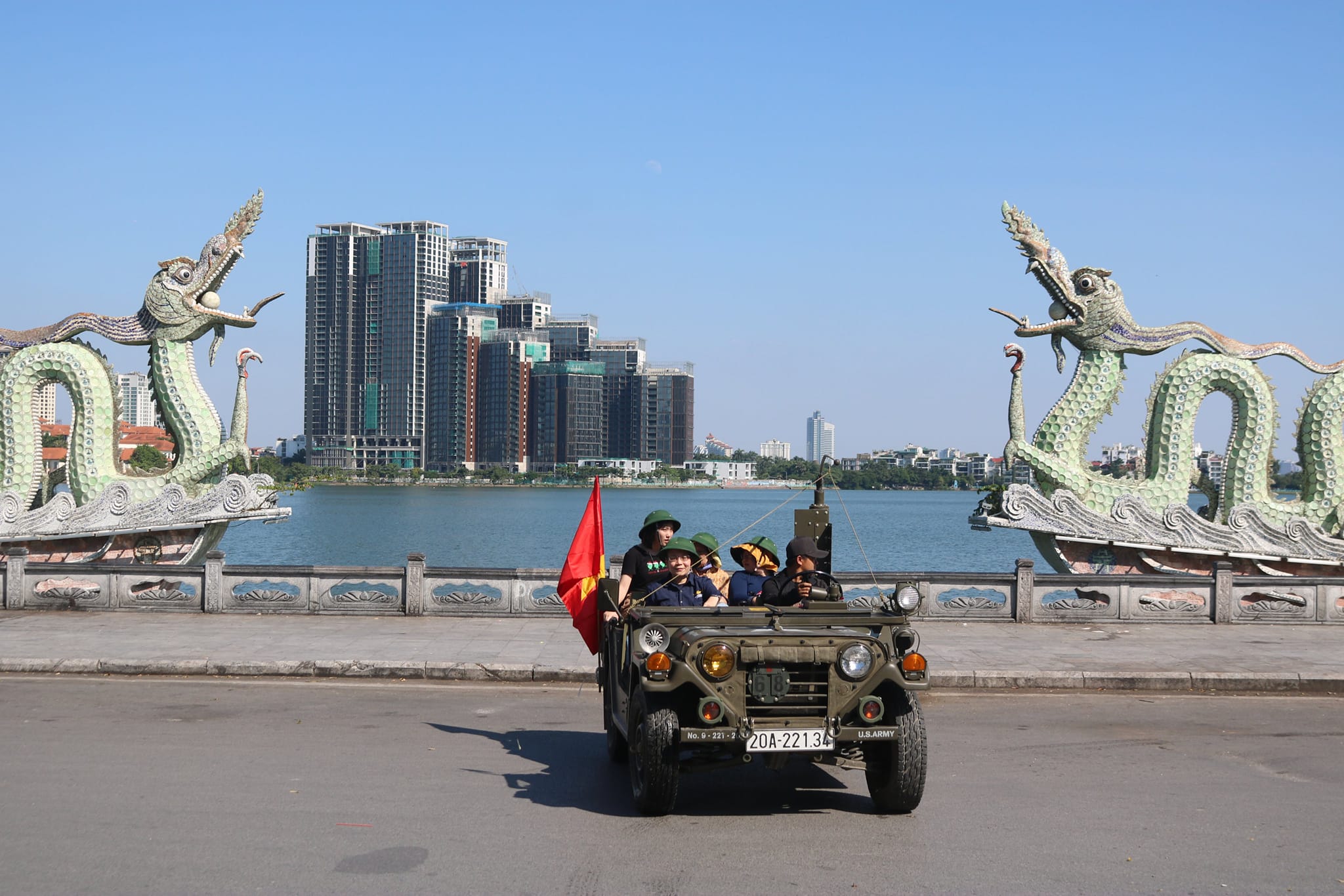 4. Then we get on the Jeep and go to the next place for food, before the food place we will ride through pass the beautiful ceramic road and Chuong Duong Bridge to enjoy fresh air from bridge and see huge of the red river and you will make stop at Long Bien Bridge for enjoy over of Hanoi city at night.