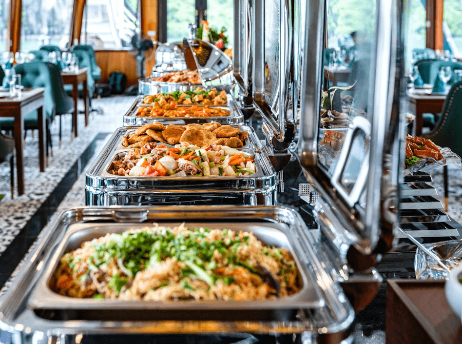 12:30: Enjoy Buffet lunch with Vietnamese traditional food while cruising though thousands of limestone islands such as: Dog Rock, Insence Bunner and especially Fighting Cock– a symbol of Ha Long Bay.