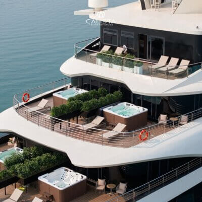 All rooms on the yacht have private bathtubs and balconies with panoramic views. The swimming pool with spa function on the bow embraces the magnificent natural scenery. 😍😍😍
