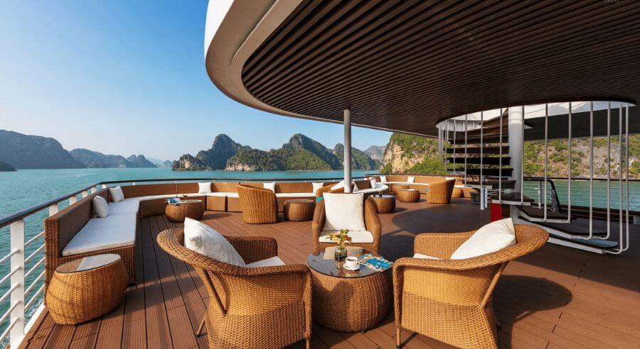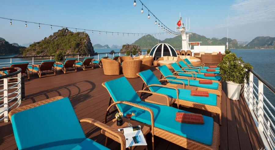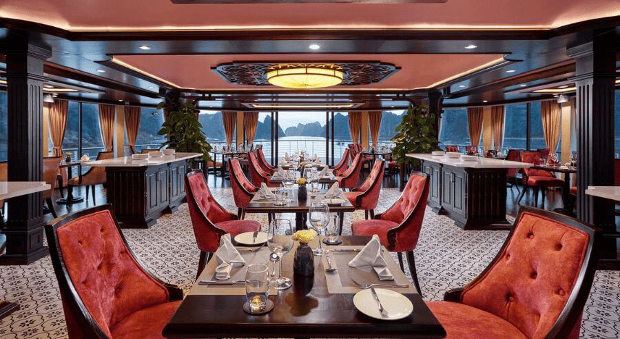 From 11:45 – 12:00, Capella Cruises gives you a warm welcome at Tuan Chau Marina. After the check-in session, you move to the cruise by boat. The very first experience on Capella Cruise is a delightful buffet lunch at the fine dining restaurant – Harmony of the Sea (featuring a separate menu for vegetarians and special diets).