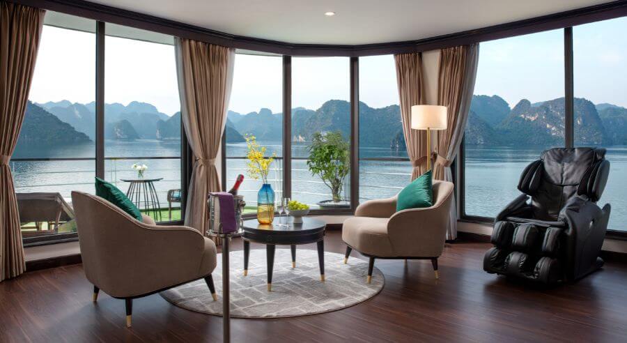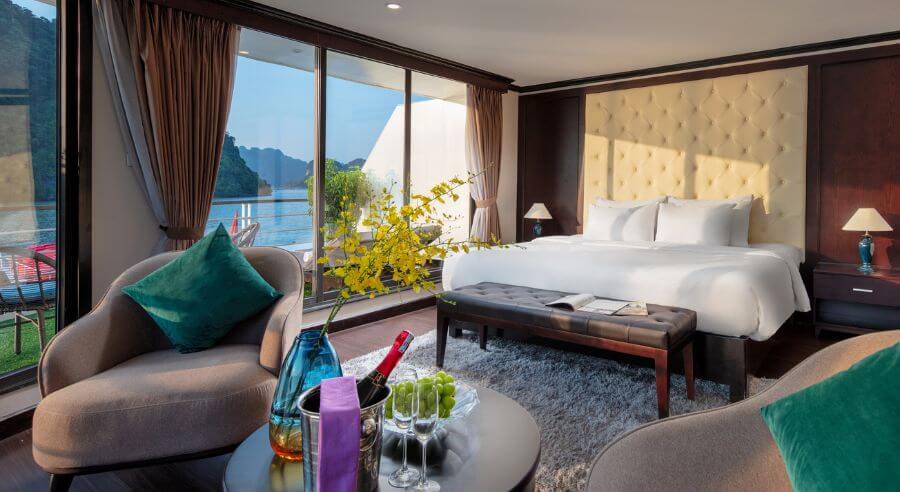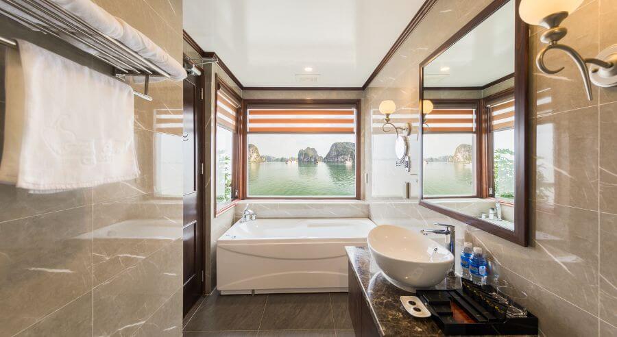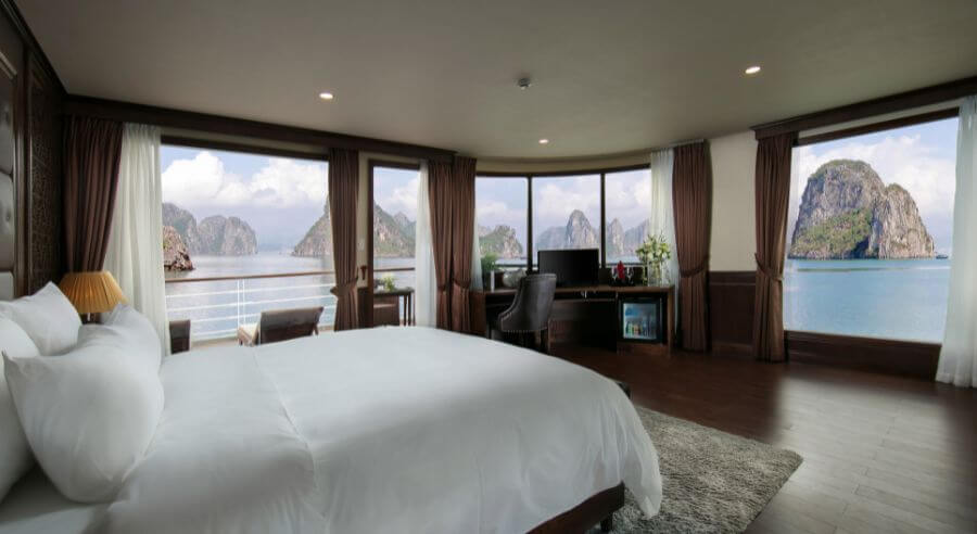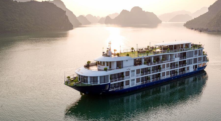 Mon Cheri Cruise is set to depart at noon from Tuan Chau International Marina, around 2.5 hours from Hanoi. If you book shuttle bus service, the pick up time is between 8:30 – 9:00am at your hotel in Hanoi Old Quarter.
