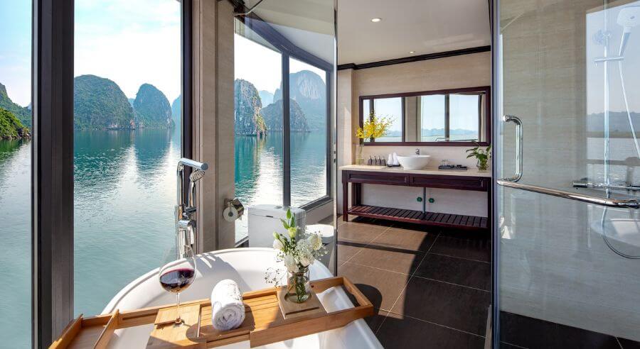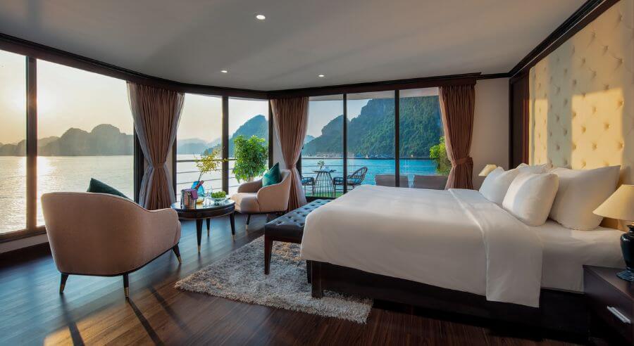 Mon Cheri Cruise welcomes you on board with a complimentary drink. After the safety instructions, guests check in the cabin and the cruise starts cruising and explore Lan Ha Bay. You have lunch while the cruise passes stunning islets and islands. These amazing limestone karst formations rise up out of the sea in an impressive manner.