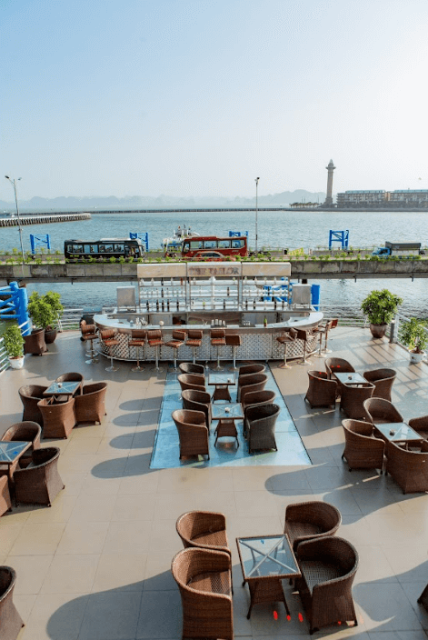 The cruise returns to the coastal area and docks at the International Port of Ha Long. While waiting, guests can enjoy afternoon tea accompanied by music at The Echo Bar on the cruise and admire the beauty of Ha Long Bay in the evening light.