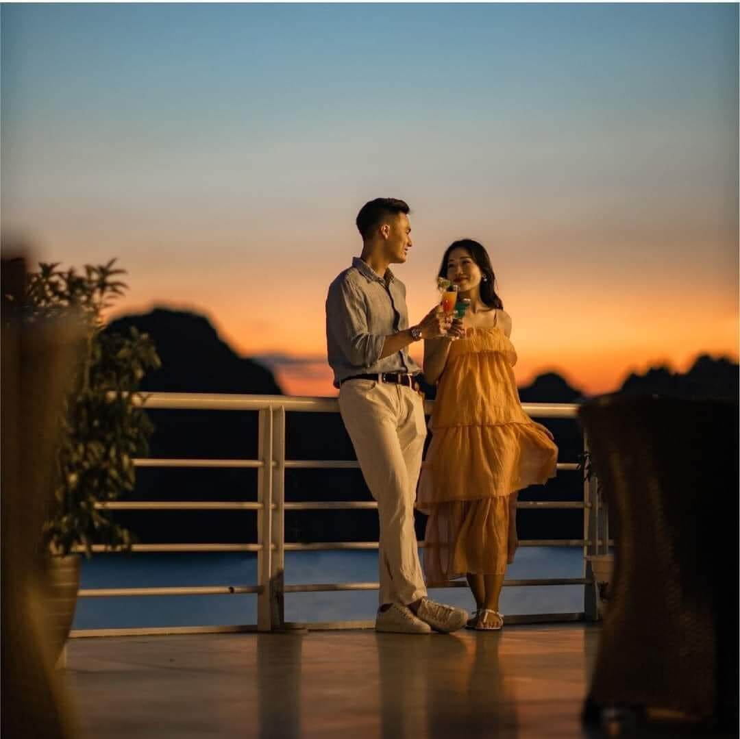 After dinner, passengers can relax with the night view of Halong on the 1st and 2nd floor’s Sundeck or participate in other entertainment activities on the cruise In particular, you can join in our karaoke program or immerse yourself with sublimated music at Echo Bar & Lounge, equipped with the