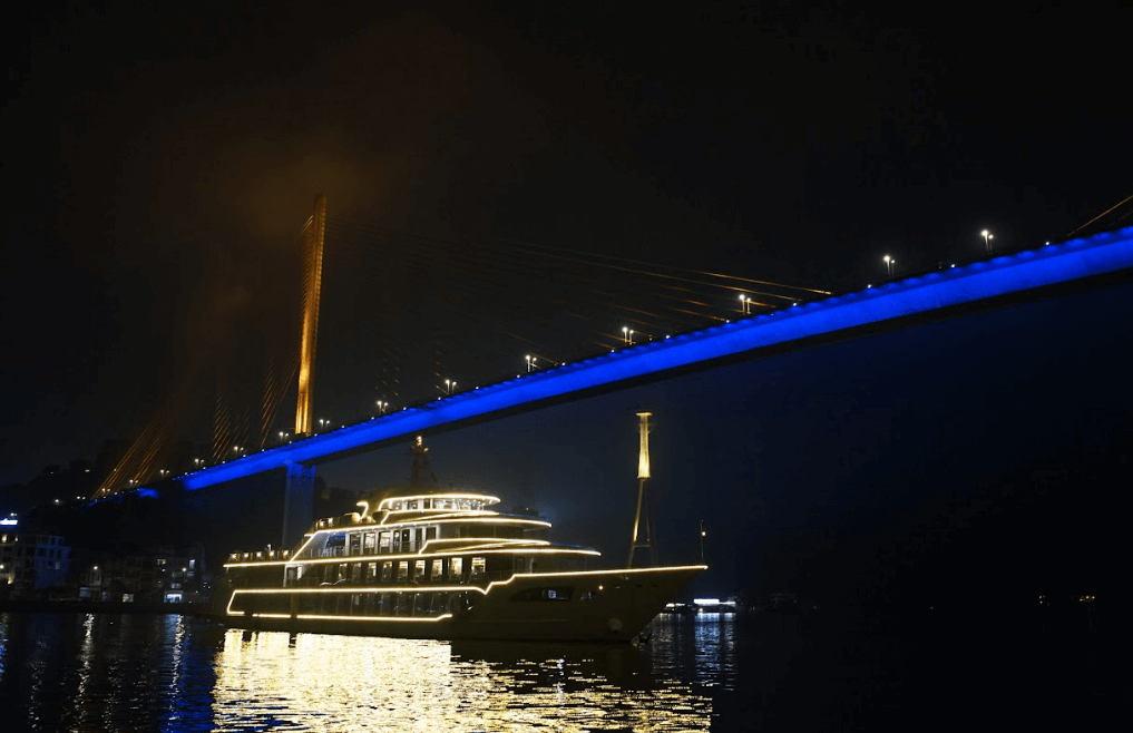 The cruise reaches the docking point. Enjoy the scrumptious dinner at Bayside Bayside Delight or Sea Breeze Restaurant with special menu inspired by special-ties of Eastern, Western and local cuisine – prepared by our experienced and dedicated chefs. As you enjoy your meal, talented violin and guitar musicians will create a serene and enchanting ambiance, providing a delightful musical backdrop to enhance your dining experience.